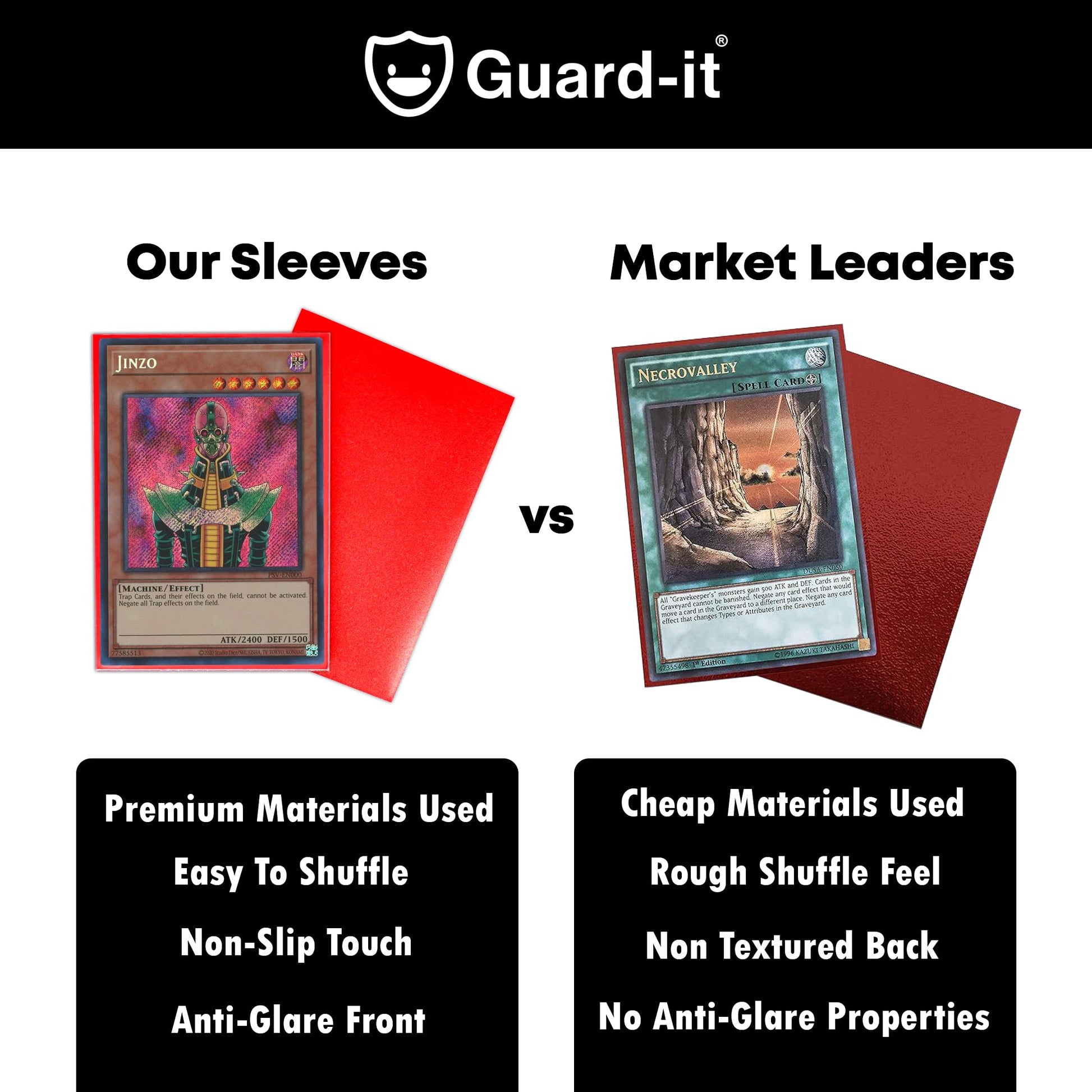 - PREMIUM FEEL - Elevate your trading card experience with our sleeves, offering easy shuffle design, high-clarity front and a textured matte back. Immerse yourself in tactile sophistication as the unique texture adds a touch of luxury, ensuring seamless shuffling and perfect protection for your valuable collection.